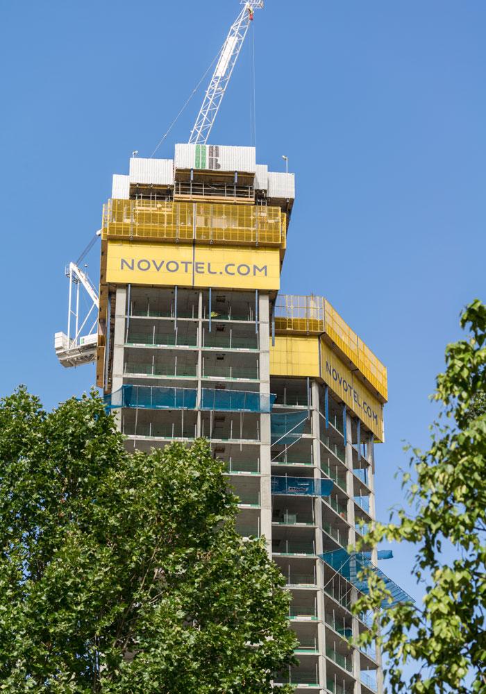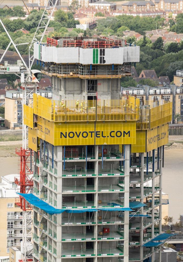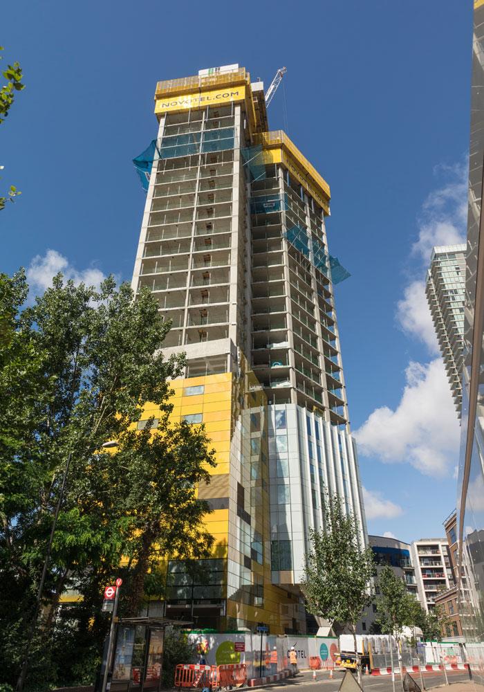 The Novotel is a 40 storey hotel providing over 300 bedrooms and is situated in a prime location within the London Docklands. The external glazing offers views over the Canary Wharf business district. The top floors comprise restuarants and bar and are accessed via a feature staircase. The structure consists of a central concrete core consisting of stairs, lifts and service shafts and the slabs are reinforced concrete with supporting rc columns.