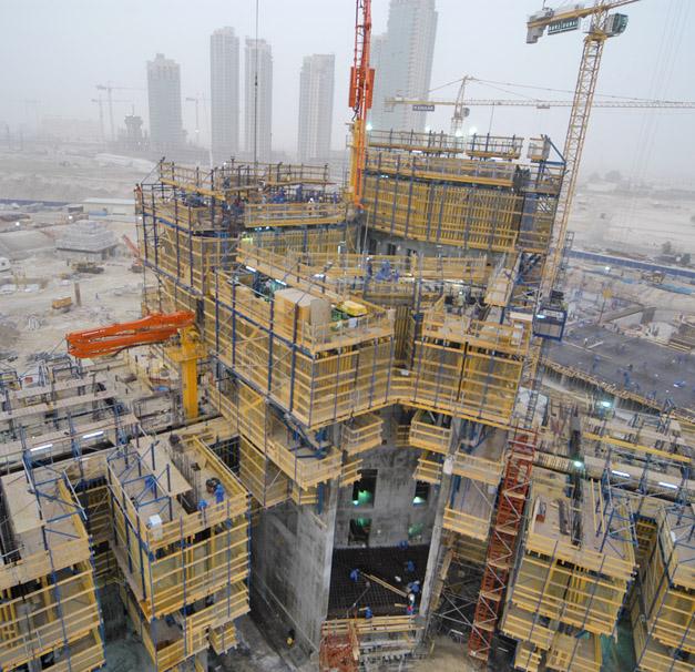 Doka formwork was used in Dubai to help construct the world's tallest building. Here, Doka supplied the formwork solution for the entire structure core. Inspired by an Arabian desert flower, the shape of the tower meant that the formwork needed to be highly adaptable. In turn, the extremely tight construction schedule necessitated a perfectly thought-out utilisation plan.