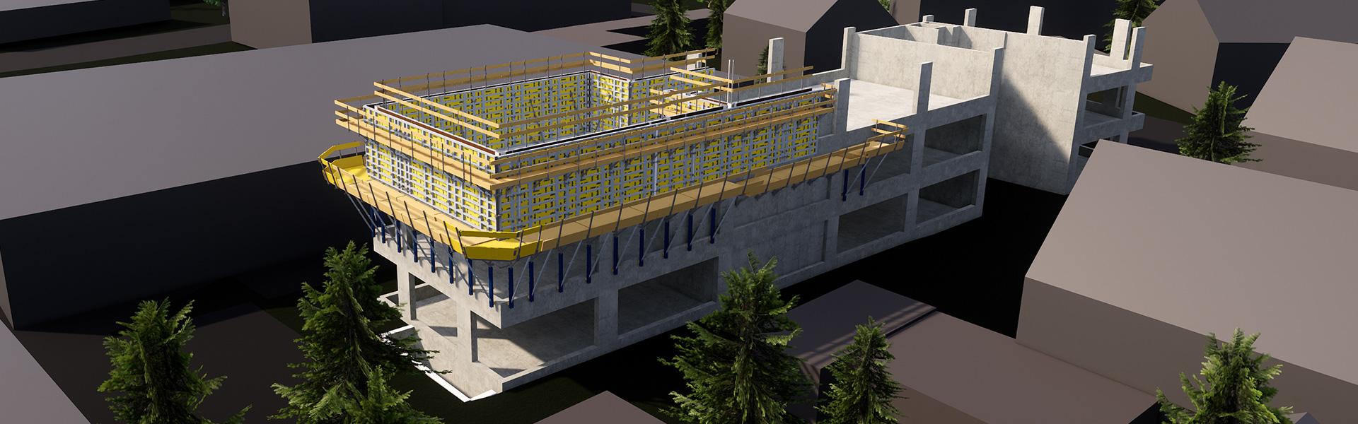Construction software specialist SOFiSTiK AG is one of the pioneers of BIM in Germany. The company is planning and implementing its new office building in Nuremberg entirely with this innovative methodology. Lead contractor is WOLFF & MÜLLER Hoch- und Industriebau GmbH & Co. KG, who also has a great deal of experience in the BIM environment. Doka is supplying the formwork solution for the three-storey administrative building and retrospectively has an in-build integrated virtual formwork concept in place to assist construction. The design for the administrative block was drafted by architects GP Wirth Architekten.