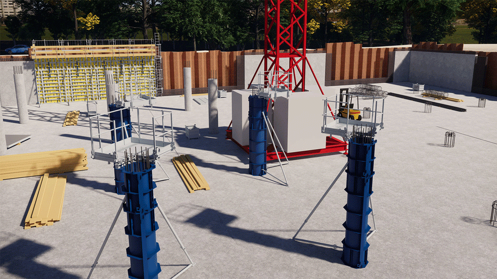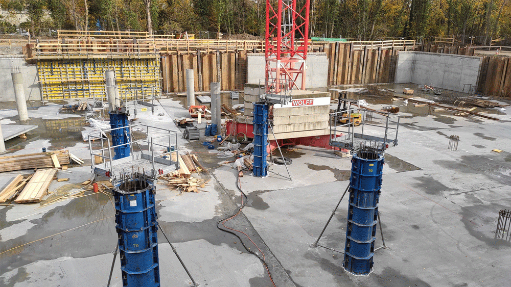 Framax Xlife plus framed formwork was chosen for the wall formwork due to the limited space between the sheet-pile walls and in-situ walls. The concrete poured was the sewage-resistant concrete C30/37 B6 C3A.
