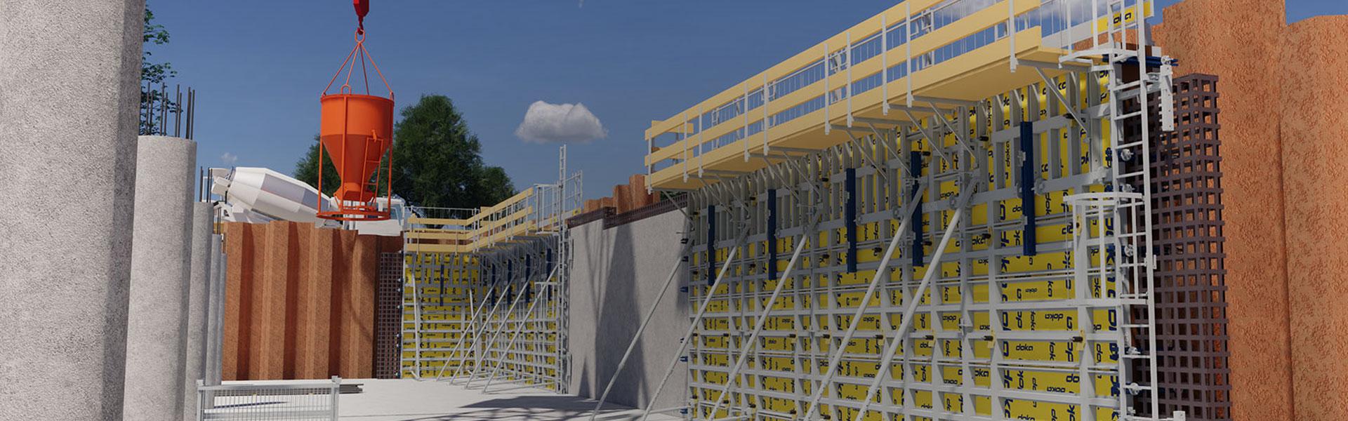 The experts at Doka created a virtual model based on building information modelling (BIM) for the construction of a reservoir in Vienna’s 23rd district so that wall formwork and cycle times could be planned precisely. This reduced the on-site work and resources required by construction company HABAU. Each worker’s formwork productivity doubled, with one casting section completed every three days.
