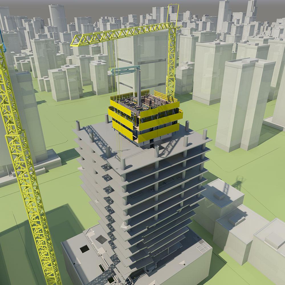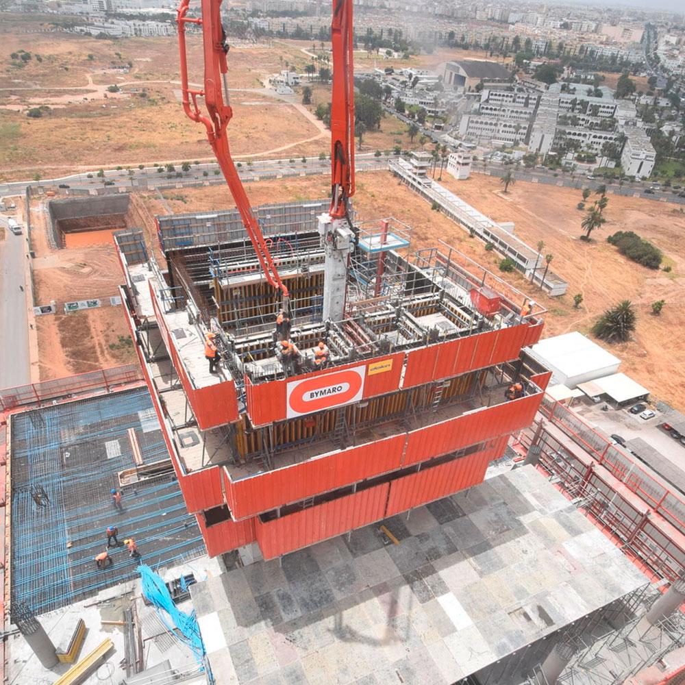 The Casablanca Finance City Authority, the corporate structure leading the development of Casablanca’s new business district, gets an new head office. Designed by Morphosis Architects, this futuristic tower will be located on the site of Casa Anfa, the former Anfa airport, and will be at the heart of the international finance district occupying 320 hectares and boasting more than one million square metres of office space. The Tour CFC (Casa Finance City) is a 122 metre high skyscraper comprising 25 storeys, a mezzanine and 6 levels of underground parking, delivering a total surface area of 21,000 m². Ultramodern, bright and spectacular in design, the CFC tower is destined to become the nerve centre of African regional business and finance. The Doka BIM solution included 3D planning of the used systems Xclimb60 (special design), 4D simulation in Navisworks considering the high safety requirements and project transfer via BIM360.