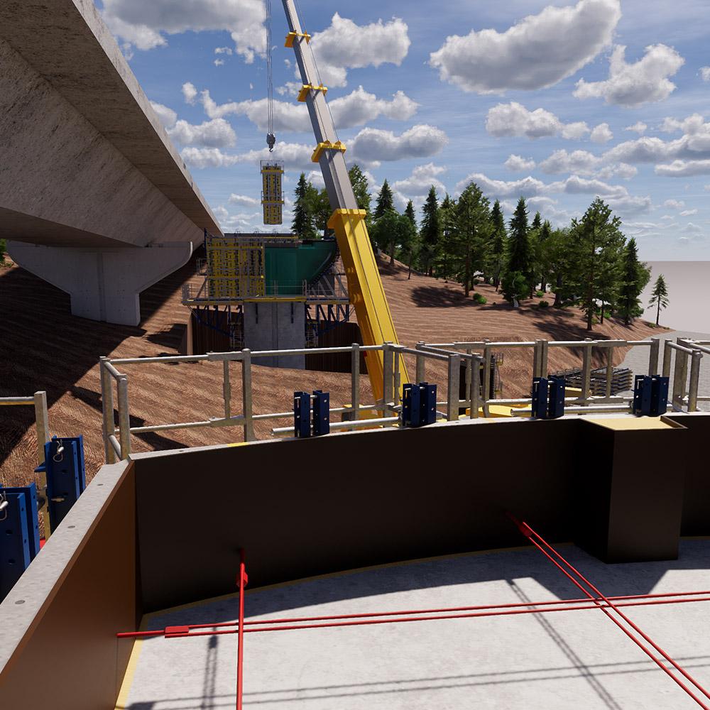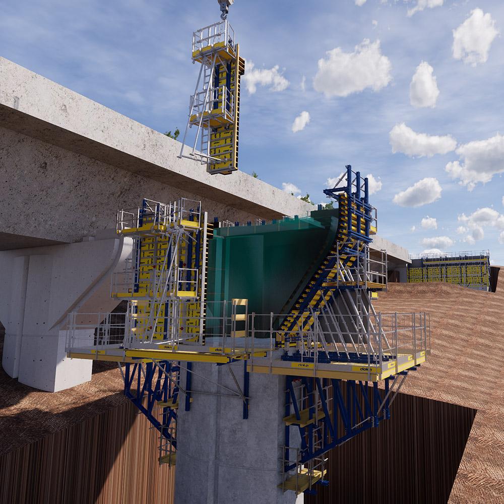 In the heart of a forest massif, the 249 metres long Viaduc de la Roumer is built. The concrete shape and the level of molding is similar to the existing bridge. It is the first infrastructure Pilot Project in BIM for Clash Detection and Site Management. The Doka BIM solution included full formwork design in AutoCAD 2D, 3D BIM Model in IFC file format and data exchange with the client on BIM360, our Common Data Environment . In addition, Doka provided Renderings, Video Animations and smart realtime Renderings with Enscape. Link to Video: https://www.youtube.com/watch?v=-pI1nejIsXI&t=1s