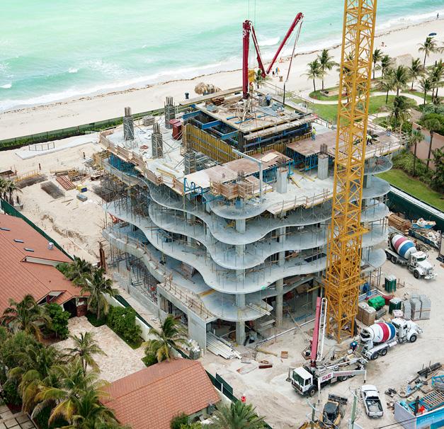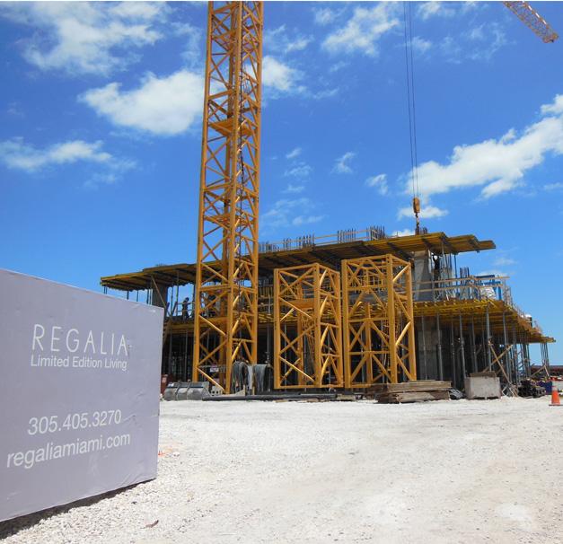 Marketed as the most luxurious building in South Florida , the Regalia Sunny Isles Beach Condominium structure is going up with the fastest formwork climbing system on the US-market. The contractor was able to meet their schedule and minimize the amount of man-hours on the project.
