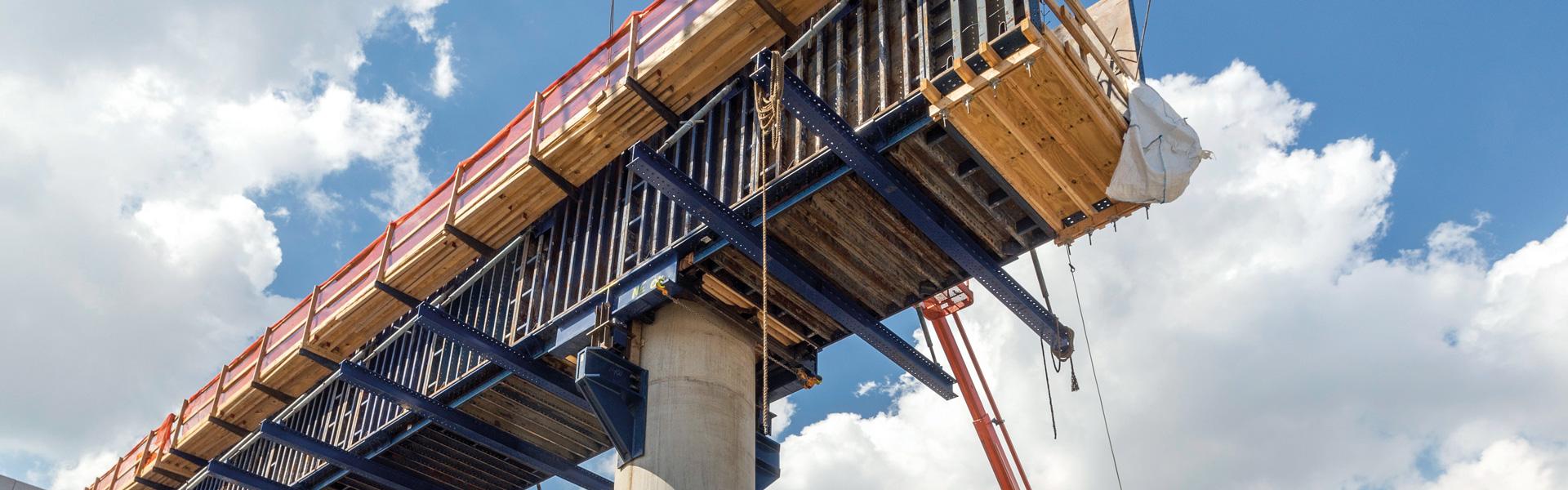 Frami for footings and abutments, steel column forms, girder panels and Framax for pier caps, Staxo and 100k/200k shoring towers