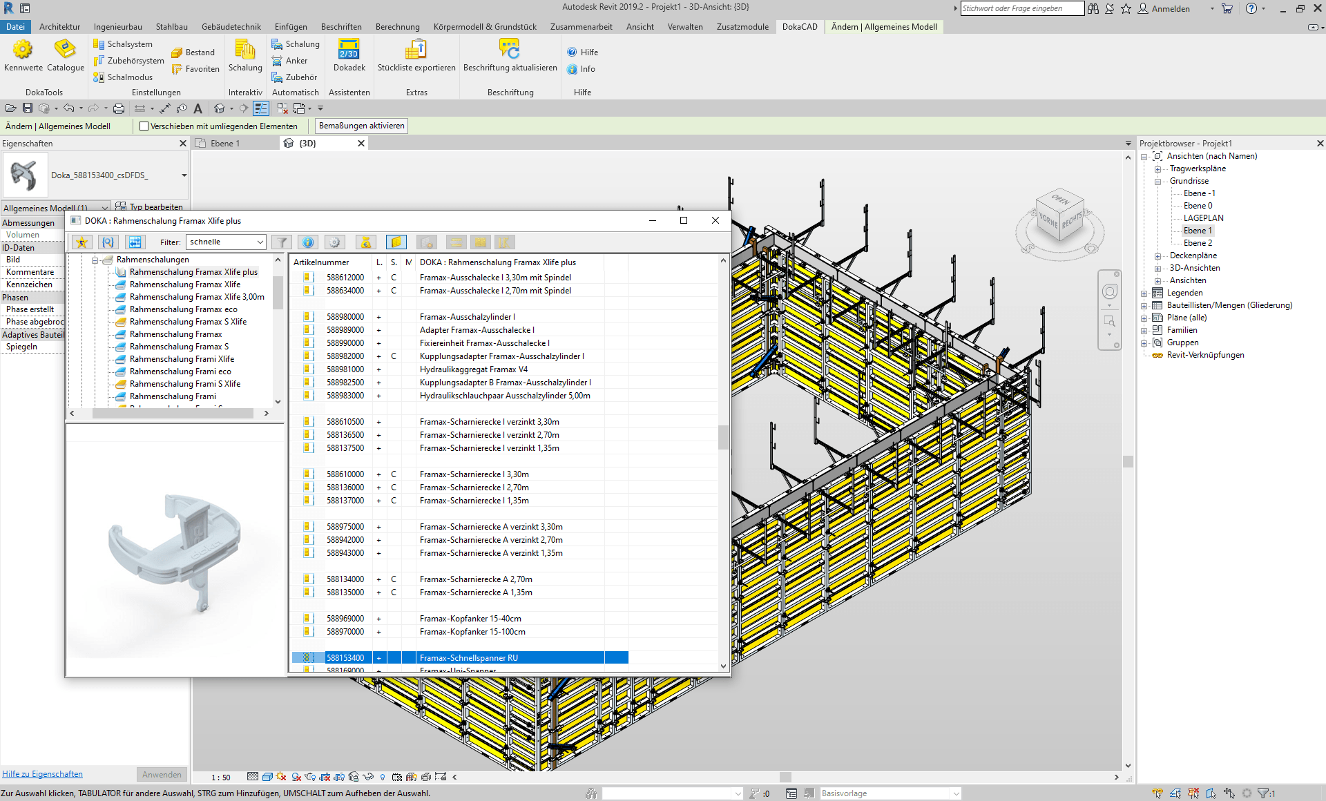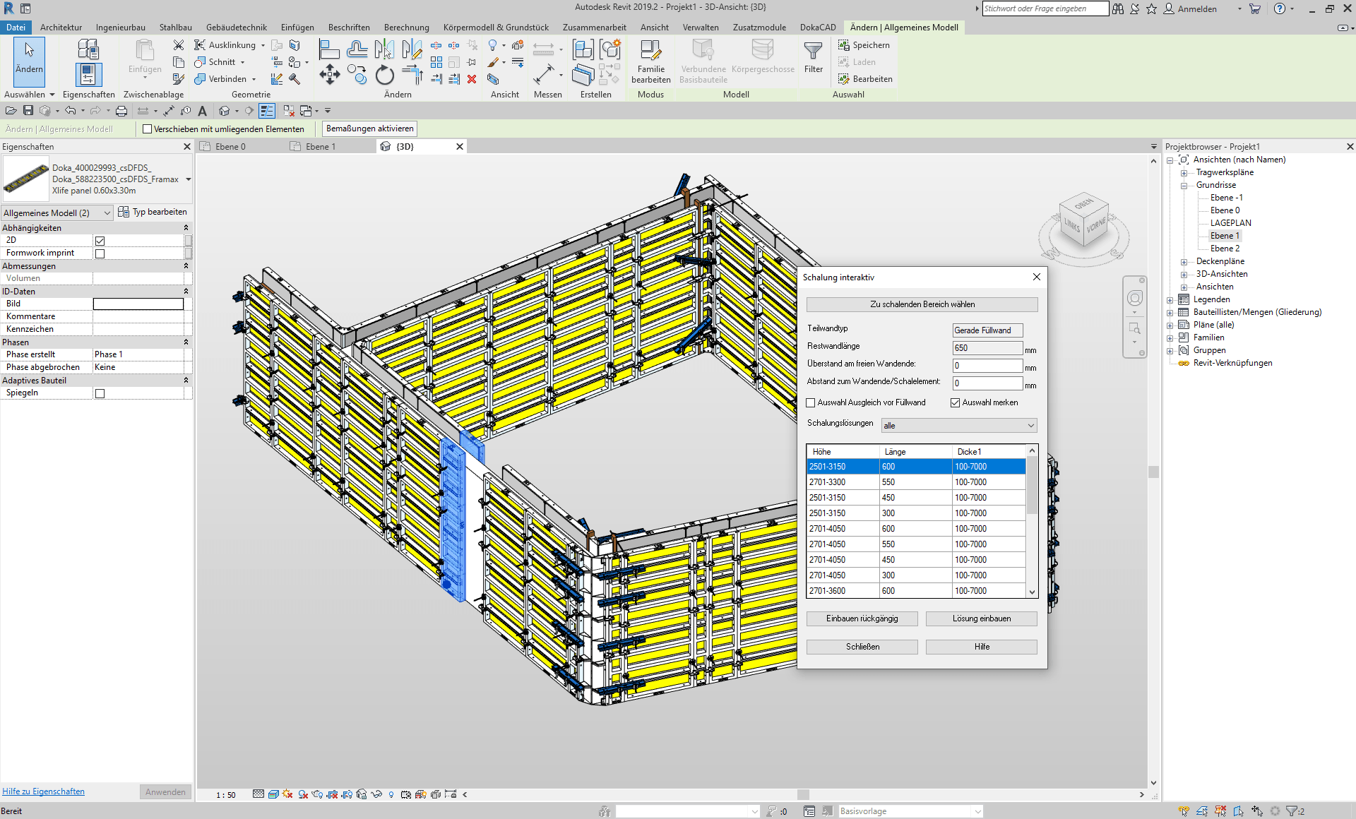 DokaCAD for Revit is the powerful planning system for increased efficiency and planning cases. It combines fast, automated formwork planning with the performance of a CAD/BIM system.